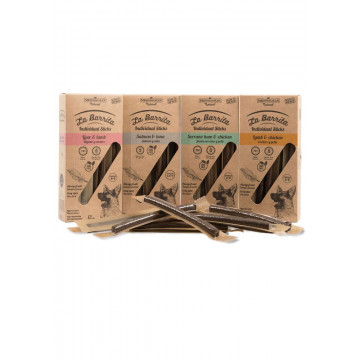 Carnes 33% (carnes desidratadas 23%, pato fresco * 10%), trigo integral * (14%), milho inteiro * (12%), gordura de frango, ervilhas inteiras * (7%), arroz integral * (5%) , cevada inteira * (5%), farelo de trigo * (5%), alfarroba * (2%), polpa de beterraba, maçã fresca * (1%), óleo de salmão, semente de linho * (1%), oligossacarídeos de fruto e manano , levedura de cerveja * (0,5%), ervas botânicas 0,02% (erva-doce *, equinácea *, tomilho *), yucca schidigera. * Ingredientes naturais